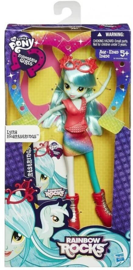 Straight from the halls of Canterlot High, the My Little Pony Equestria Girls dolls are best friends with a flair for fashion and fun! This Lyra Heartstrings doll is stylishly dressed in an ultra-chic look with cool rainbow accents and a sassy pair of glasses to match, and she has her signature cutie splash, a unique design similar to the cutie mark on her pony alter ego. Her fashion outfit and shoes are interchangeable, and you'll love sharing styles between her and other My Little Pony Equestria Girls dolls (each sold separately). Trade outfits and shoes for the ultimate fashion fun with your super-stylish Lyra Heartstrings doll! My Little Pony and all related characters are trademarks of Hasbro. Collectibles!